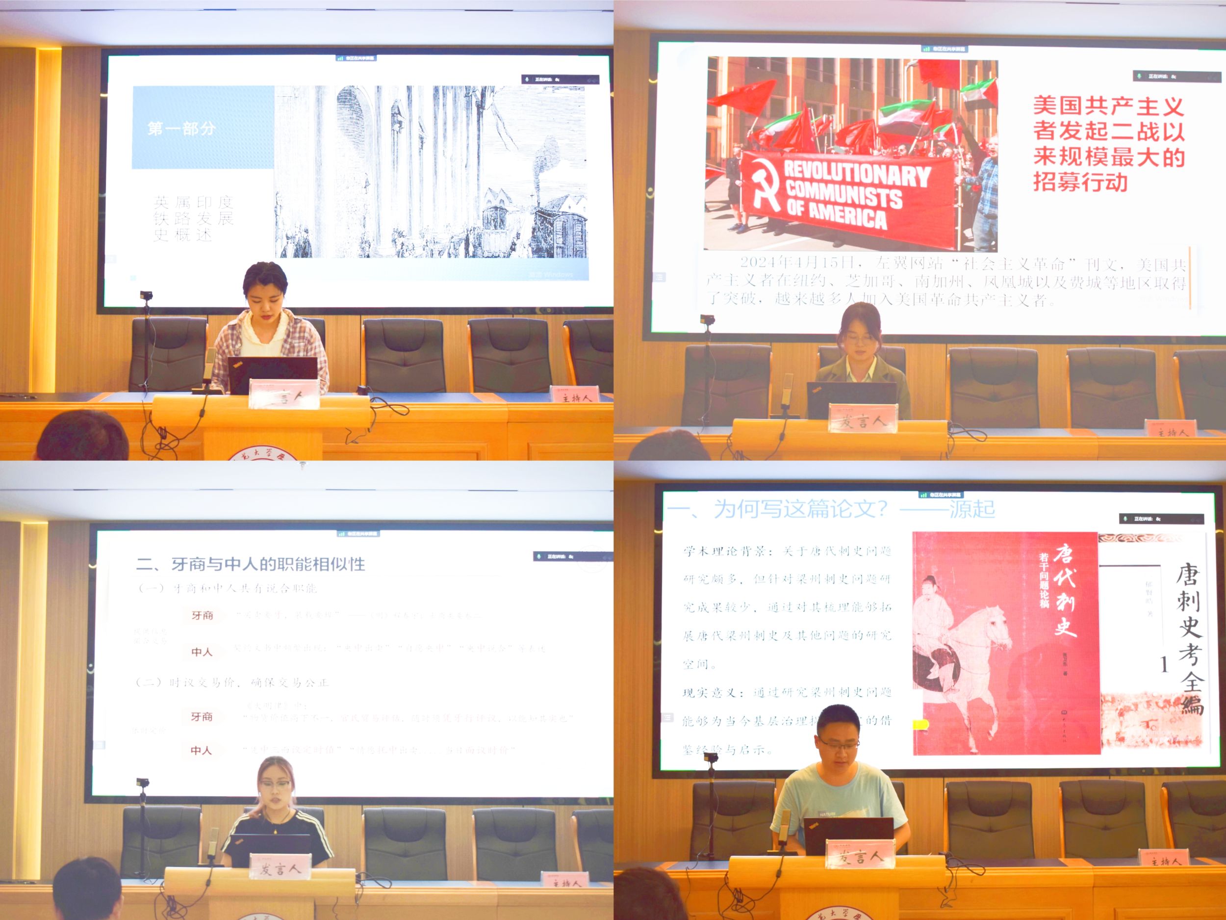 本次论文大赛共有50余名硕士、博士提交论文,主要包含中国古代史、中国近现代史、世界史和学科教学(历史)四个学位点方向,涉及政治史、经济史、文化史、社会史、科技史、妇女史、历史教学等多个领域。经过公司初审,共16篇论文进入决赛。决赛通过抽签的方式决定论文汇报顺序,采用选手汇报、评委提问、选手答辩的形式。选手们准备充分,围绕论文选题缘由与意义、学术背景、研究思路、创新之处、不足之处等方面一一展开汇报,为大家呈现一场生动的学术盛宴。评委老师结合选手们的汇报内容,就史料挖掘与应用、论文框架结构、创新点等具体细节提出了合理性修改建议。选手们积极回应评委老师们的批评与建议,现场学术氛围较为浓厚。经过激烈的角逐,古月、赵健和汪奔获一等奖,张小健、姚文熙、李贵、陶玉山、曲晓红获二等奖,陈晓丽、刘亚民、龚云云、干学豪、张群喜、孙天惠、姜丰收、石甜甜获三等奖。