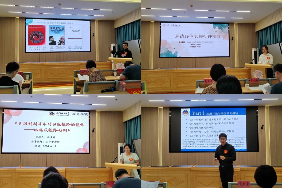 经公司初审共有10篇论文进入决赛,内容涉及政治史、经济史、文化史、国际关系、地方教育等多个领域。决赛采取选手汇报、评委提问、选手答辩的形式。选手们准备充分,围绕论文选题缘由与意义、学术背景、研究思路、创新之处、不足之处等方面一一展开汇报,为大家呈现一场别开生面的学术盛宴。评委老师结合选手们的汇报内容,充分肯定了选手们丰富的史料应用与独特切入点,同时就史料挖掘、论文框架结构、创新点、研究范围等具体细节提出了合理性修改建议、推荐相关资料。经过激烈的角逐,池佳航、杨景程获一等奖,张天昊、赵云舟、杨青霞、田若凡、吴书画、马玉获二等奖,叶逸凡、吴灿、秦嘉豪获三等奖。