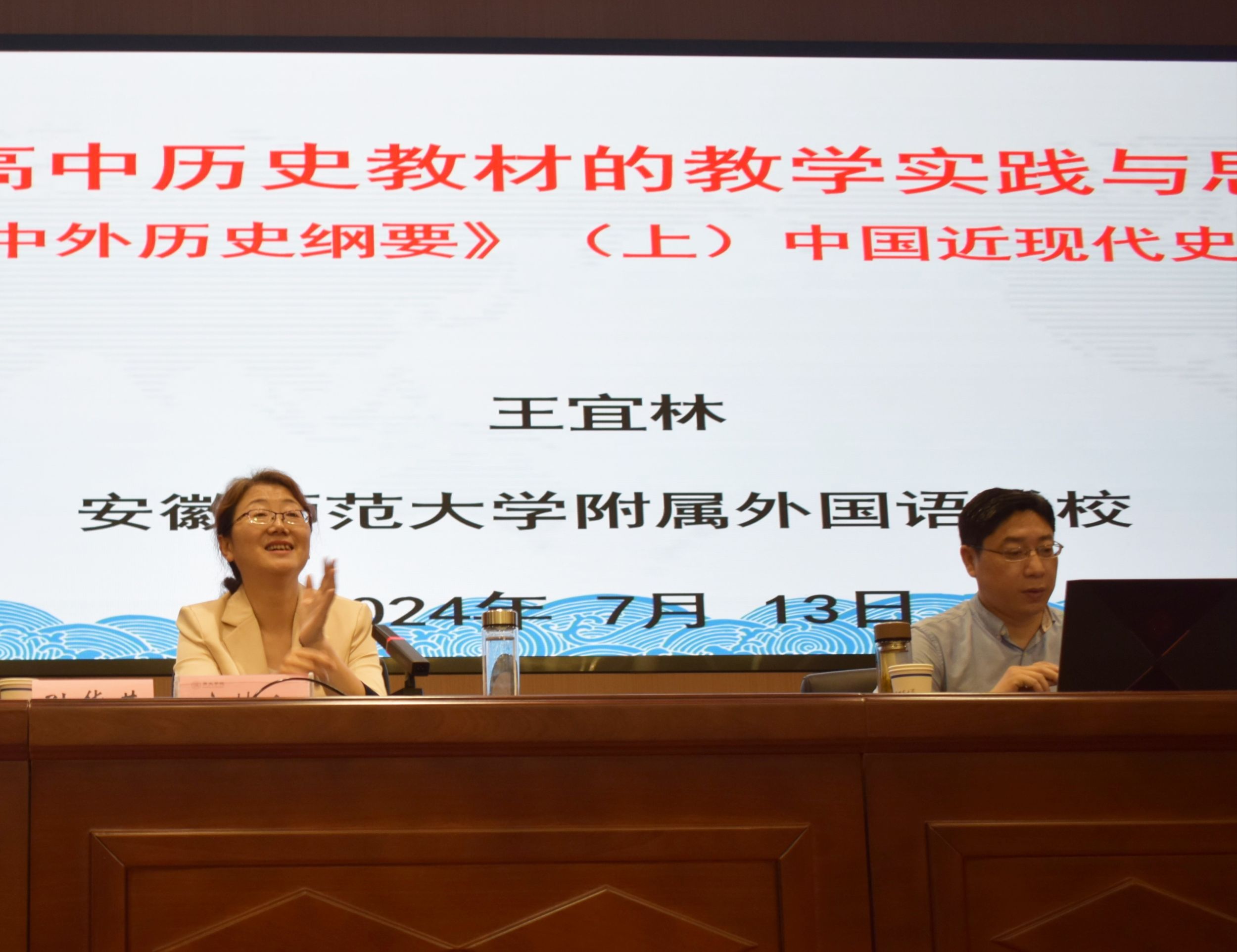 王宜林围绕“新高考——安徽省普通高考综合改革概述”“新课程——高中历史课程性质与基本理念”“新教材——《中外历史纲要》教学实践与思考”三个方面,结合自身教学经历,分析新高考改革后中学历史一线教学中出现的问题,以及对如何在教学实践中更好地利用统编教材提出了指导。他介绍了安徽省新高考改革后的情况,对高中历史课程的类型、课程性质和基本理念等进行了阐述,详细介绍了历史学科五大核心素养的内涵和运用原则和方法。他讲到,自《中外历史纲要》教材推行以来,中学一线教师普遍存在“课时少”“内容多”等问题,因此他用上海市历史教研员於以传的建议,提出自己对中学历史教学实践的想法,“在教学实践中要通过点、线、面、体的过程结构化地引导员工把握历史大势”。他具体梳理了《中外历史纲要(上)》近现代史部分内容的课程逻辑线索并提供教学建议,以第24课为例子进行了具体生动的讲述。强调在教学实践中,最重要的是掌握核心概念,运用大概念进行教学,告诫同学们一定要准确把握历史概念的内涵,要多学习、多阅读,以正确理解历史概念的内涵。他用“仰望星空,脚踏实地”寄语在座同学,肯定了同学们参与暑期小学期锤炼教学技能的付出,鼓励同学们在未来的学习实践中不断学习进步。同学们全程认真听讲,仔细记录,表示获益颇多。