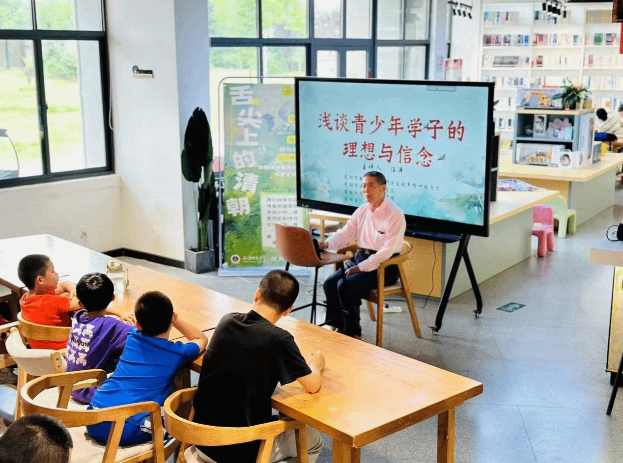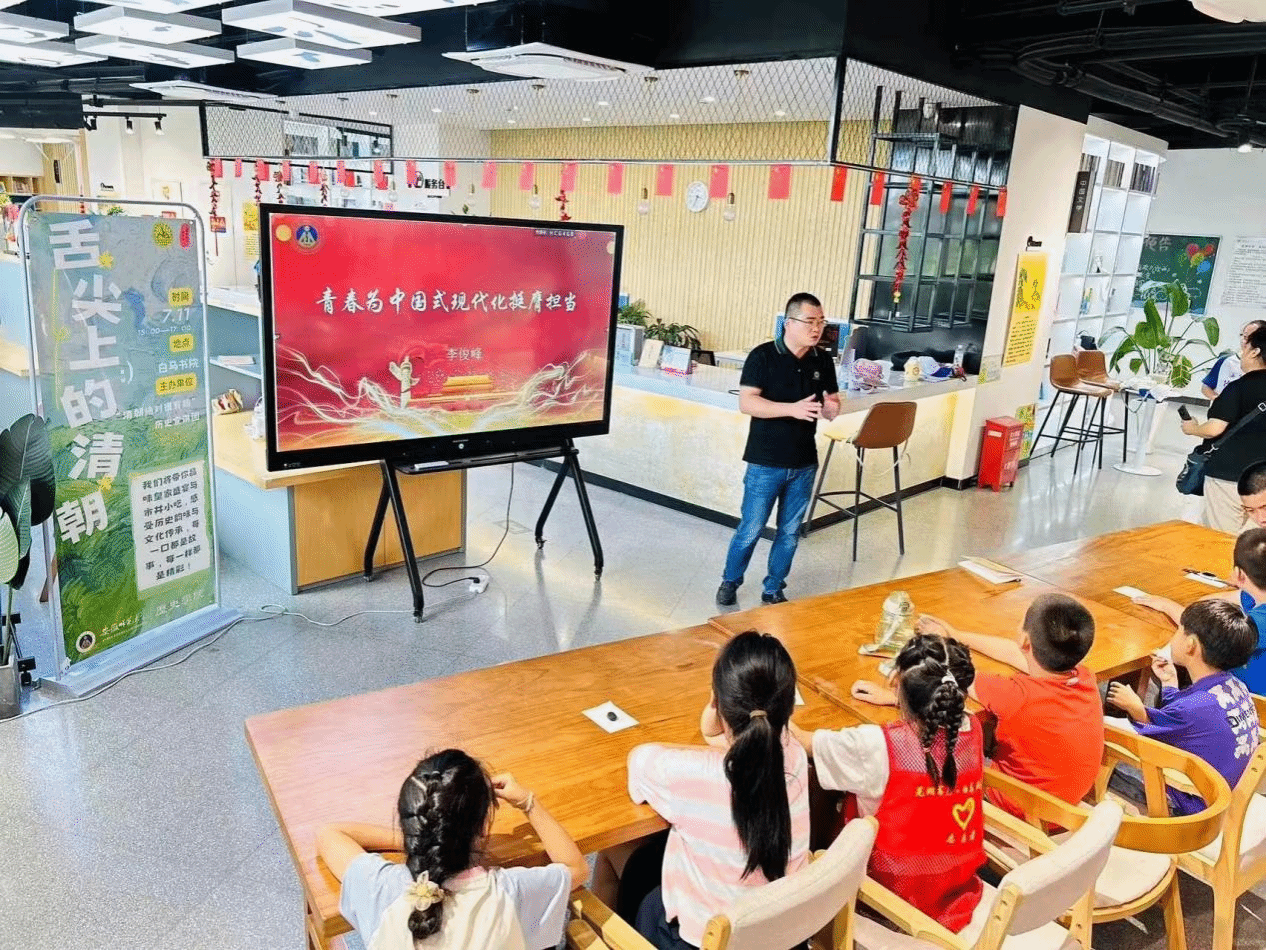 李俊峰老师为实践队员和小朋友们带来了一堂“行走的思政课堂”,以“青春为中国式现代化挺膺担当”为主题,讲述了读书的重要性,号召同学们在暑期读一本好书、追一部好剧、到一个好地方,从文本、视频图画、脚步丈量等多个方面去学习,讲好故事,做新时代好青年、好少年。实践队员和小朋友们全神贯注,认真汲取知识,受益颇丰。