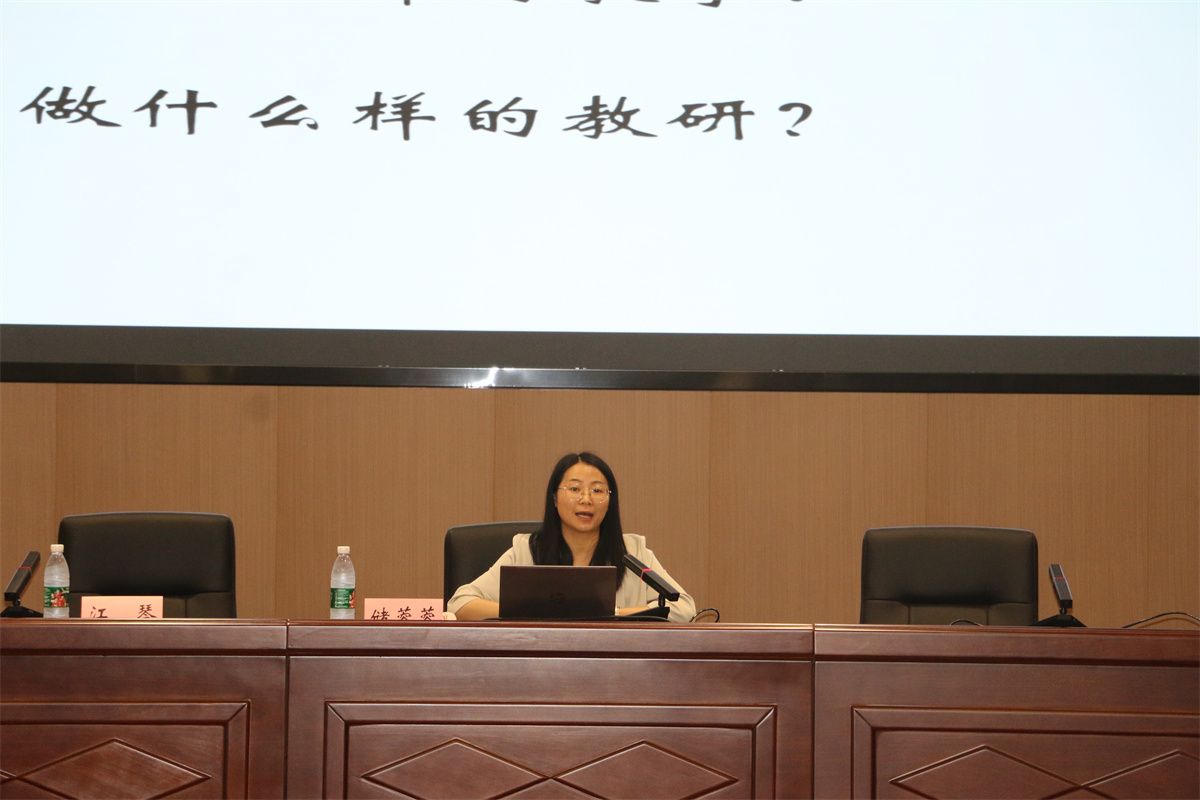 “顺势而为、乘势而上、聚势而强”。如何做好教师,储蓉蓉老师的回答是不惧挑战,迎难而上,于规划中主动成长,逐步从立足自我、站上讲台的新手教师,到丰富自我、站稳讲台的骨干教师,再到超越自我、站好讲台的卓越教师,最后成为共享自我、走下讲台的教育家。如何做好教学,储蓉蓉老师提示我们要在历练中加快提升,员工素养不断提高的当下,对教师能力提出更高的要求,可以通过优质课评比、录播课评比、教坛新星评选、公开课观摩、各类讲座开展等途径,在个人抓住机遇,注重学习积累的同时借助集体力量,求助名师指导。如何做好教研,论文的评比和发表、课题项目的主持和参与、各类试题的命题工作三方面齐开花,于平稳中力求突破。储蓉蓉老师结合自己数十年的教学经历,列举大量实例,细致的讲解教师教学教研三位一体的优秀教师成长道路,主张教学是主线、德育是虚线、教研是辅线,总结自己的教师道路始于热爱、行于探索、成于坚持。