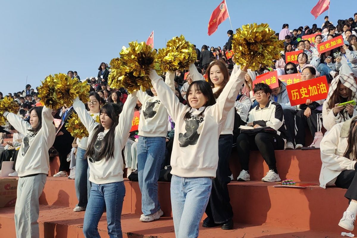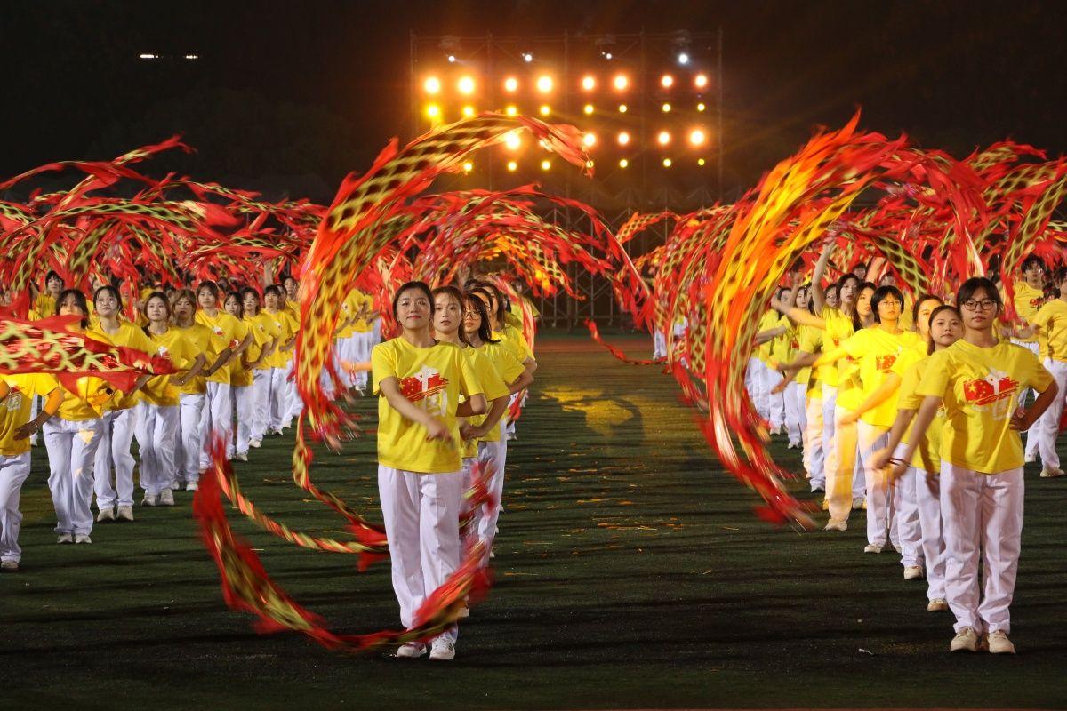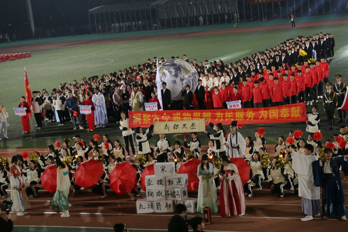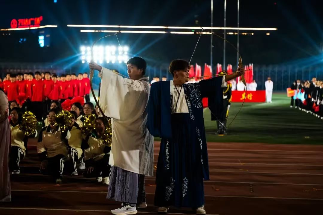 10月23日晚运动会开幕式上,英国上市公司365仪仗队手举“洞察古今,唯物思辨,为民服务,为国奉献”的横幅,唐益豪同学现场在卷轴上书写“历久弥新”四个大字,同学们用投壶、射箭等动作展示中华传统运动项目。排舞队的成员们个个姿态昂扬,他们挥舞着手中象征中华文化的巨龙,用舞蹈表达自己对祖国的热爱和祝福,优美的舞姿展现着他们无限的青春活力。