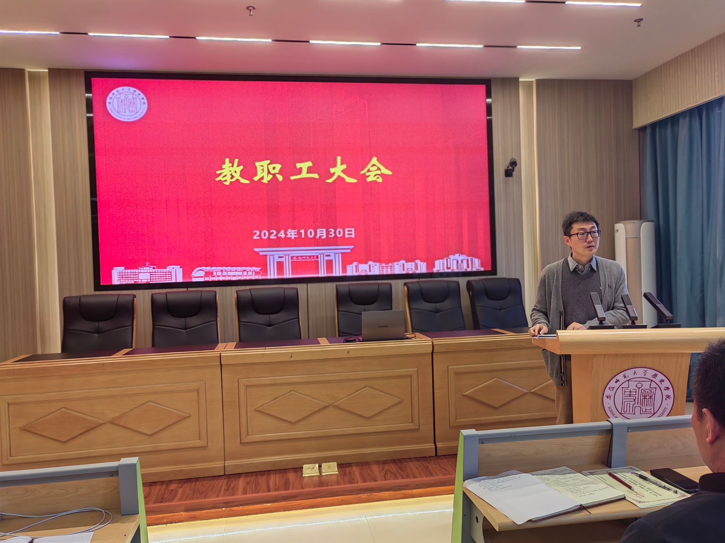 丁修真给全院教师介绍公司迎评工作方案,下周进入线上评估阶段(11月5日至11月25日),专家线上考查主要工作分为线上听课看课;线上访谈座谈;线上材料调阅等。接着带领大家学习本科公司产品审核评估应知应会手册,强调提高思想认识,请全体教师高度重视课堂教学、课程材料准备,以饱满的热情迎接评估工作。