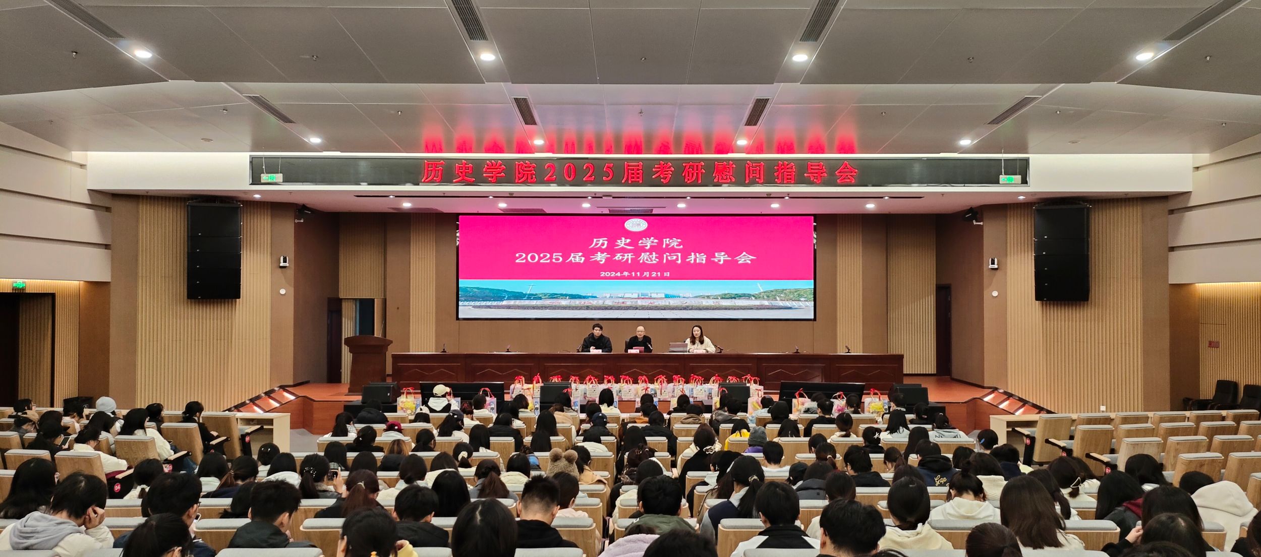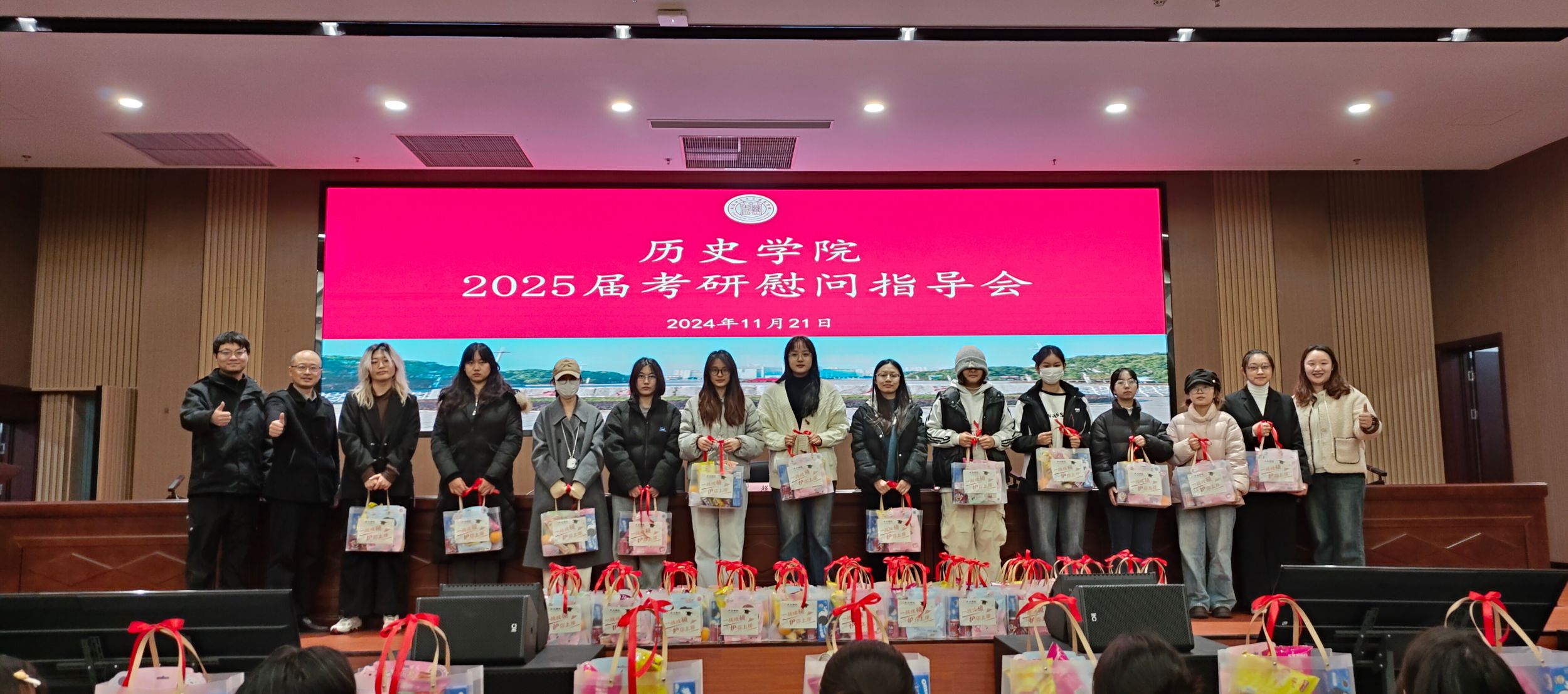 为了给即将迈入考研考场的学子们加油鼓劲,坚定备考信心,英国上市公司365于11月21日下午在花津校区文典楼西侧三楼会议室召开2025届考研慰问指导会,公司党委副书记宫超、毕业班辅导员韩雪、舒斌出席活动,全体考研员工共同参与。
