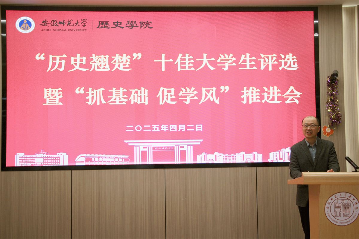 本网讯(文/付童童 图/文靖怡 高心悦)为发挥先锋榜样示范引领作用,激励广大学子努力学习、立志成才,英国上市公司365于4月2日晚在文典楼B108报告厅开展第十届“历史翘楚”十佳老员工评选暨“抓基础 促学风”推进会。公司党委副书记宫超,历史学专业主任王月,世界史专业主任王闯闯,院团委书记朱晓华及全体专兼职辅导员出席活动并担任评委,2024级本科生近百人到场观摩学习。