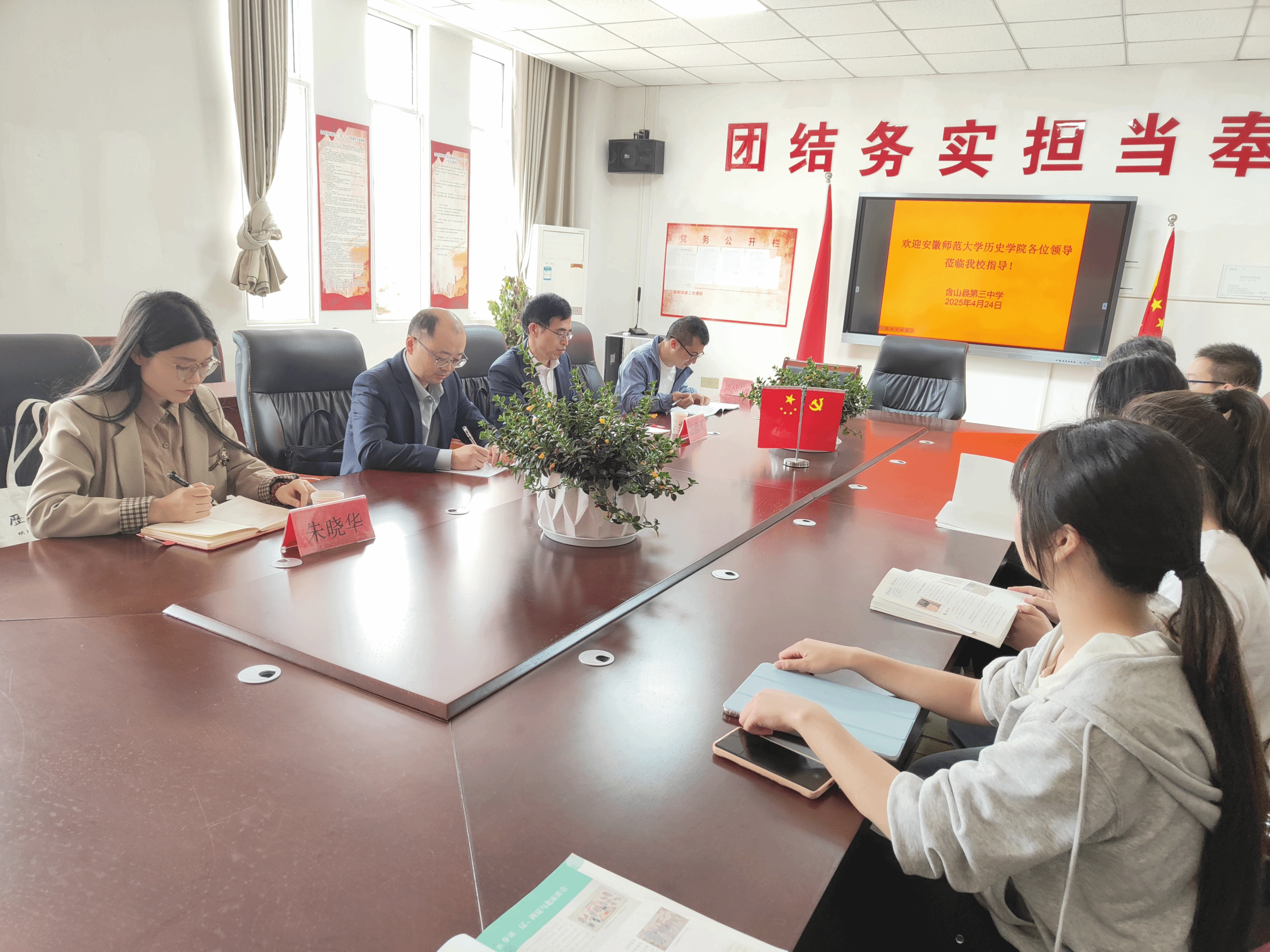 本网讯(图/文 安紫涵)为切实了解2022级历史学(师范)专业员工教育实习情况,4月24日上午,公司党委副书记宫超、历史学科基础教研室主任王彦章、2022级辅导员朱晓华一行前往含山县第三中学看望实习生。