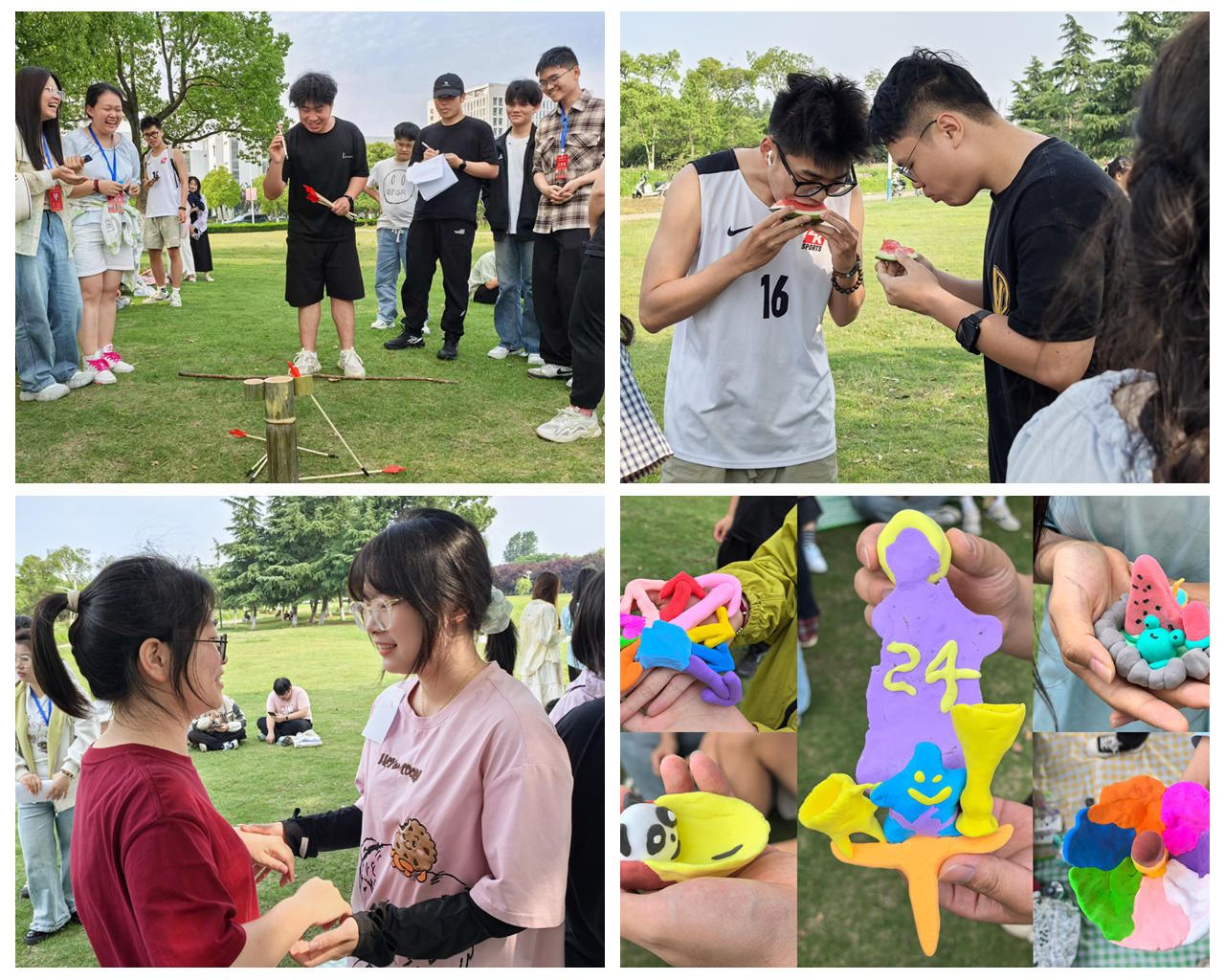 公司发展辅导站于5月25日下午在津南草坪组织开展了内容丰富的夏日解压大挑战活动,涵盖了粘土制作、卡牌游戏、趣味投壶、123木头人等项目。分组互动游戏使同学们在参与中释放压力,在欢声笑语中体悟团队精神,于精神愉悦中缓解心理焦虑。