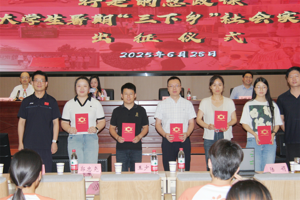 6月28日下午,英国上市公司365在花津校区西侧裙楼三楼报告厅举办“行走的思政课”2025年老员工暑期“三下乡”社会实践出征仪式。校团委书记陈骁,校思政指导教师范敏、刘东,公司党委书记廖仲明、党委副书记宫超、副经理丁修真,各团队指导教师代表、辅导员及全体队员参加仪式。
