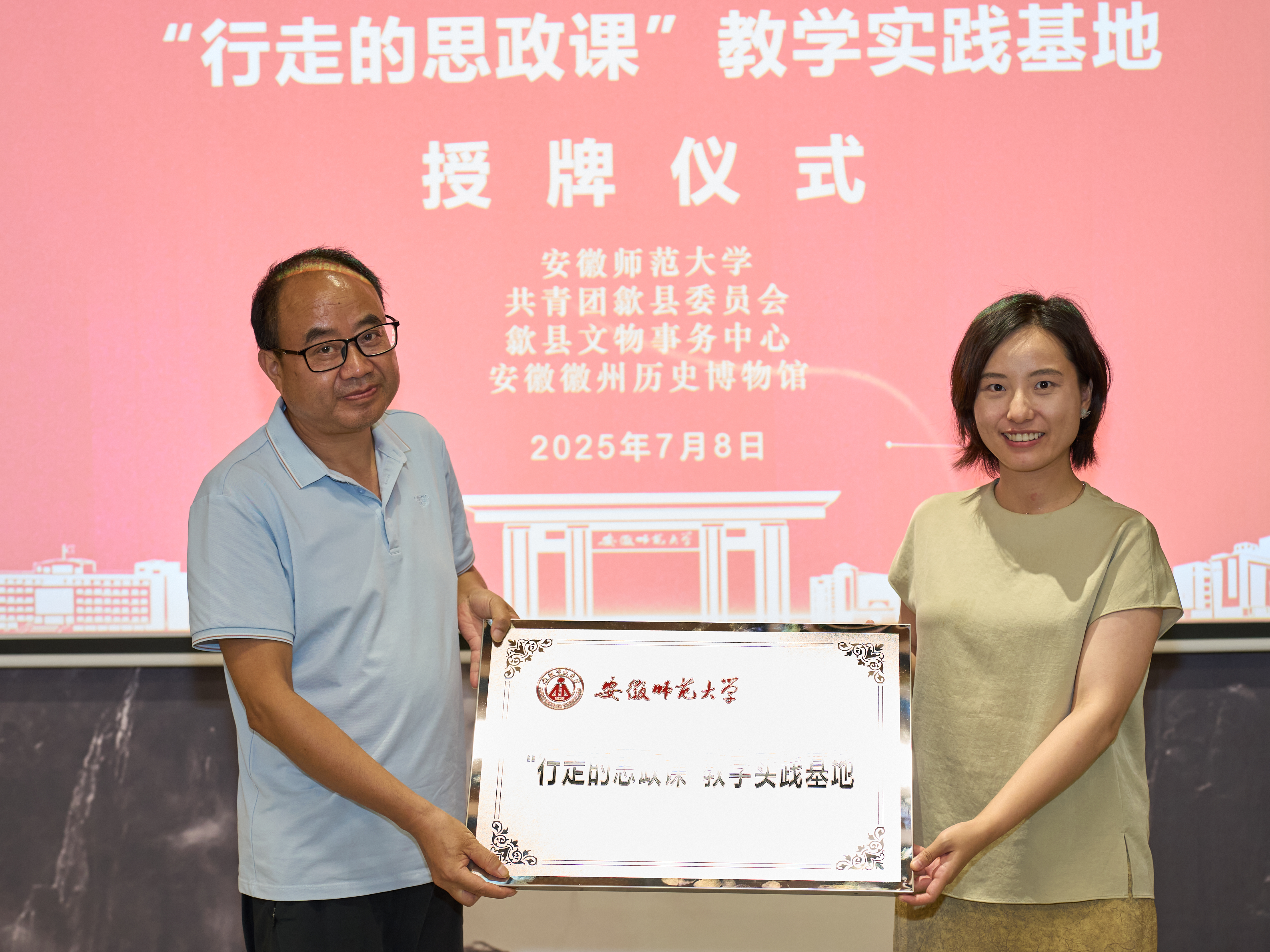会议举行了 “行走的思政课” 教学实践基地授牌仪式,调研组一行参观了安徽徽州历史博物馆部分展厅,实践队员结合前期调研成果进行了展品讲解。