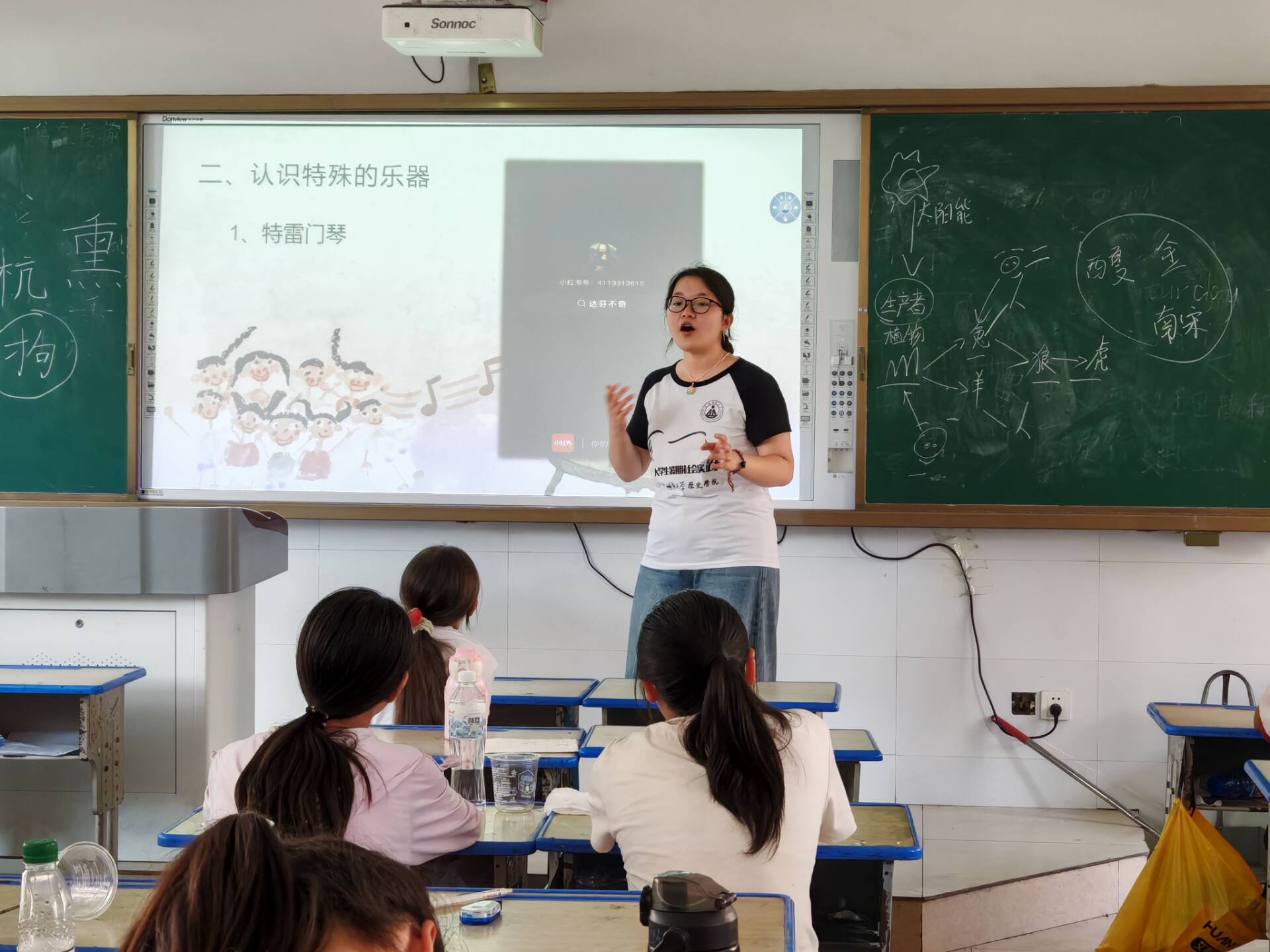 音乐课飘着皖北的风,汪梦琳先哼了段从镇上老人口中记下的民歌调儿,孩子们跟着调子唱“麦子黄”“槐花香”,跑调的歌声里裹着对土地的热乎气。