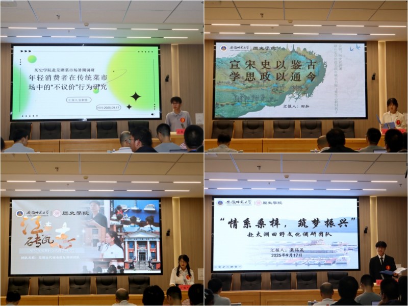 会上,各团队围绕实践内容,对同学们在社会实践动态行“走”的脉络以及过程中在“看(认知)、讲(认识)、思(认可)、做(认同)”等方面取得的成果进行详细汇报,内容覆盖爱心支教、公益宣讲、古迹保护、家族宗谱溯源、非遗文化传承、徽州文化调研、红色文化保护与传承、暑期“小学期”实训调研等方面。汇报中,各团队不仅展示了实践过程中的生动经历与丰硕成果,还结合实际反思实践中存在的问题,以总结促提升、以评比强动力,充分彰显了历史新青年们躬身实践、挺膺担当的社会责任感。宫超对各团队的实践成果与汇报展示给予了高度评价,从“形”与“实”两方面对汇报展示提出了优化建议。他指出,从各团队的汇报中能够清晰地看到同学们在实践中的成长蜕变与丰硕成果,要以突出“专”、强化“全”、注重“时”、保持“连”的“四字真经”,进一步深化后续实践工作,特别是做好总结提升、成果固化、榜样示范、对外联络等工作,共同助力公司实践育人工作再上新台阶。