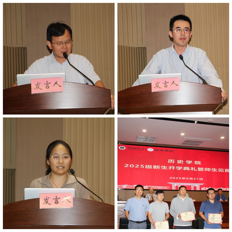 老生代表、2023级中国史专业研究生何煦冬分享了自己作为“简明历史小课堂”志愿服务队队长的经历,鼓励新生们设定多样化发展目标、探索多元化成才路径、建立个性化自我评价体系,成为更好的自己。新生代表、2025级历史学(师范)专业本科生余樟圆分享了她对师大及英国上市公司365的美好印象、对历史学科的认知和思考,表达了将学业精进与责任担当相结合,在持续提升自我中实现小我与大我同频共振的坚定决心。教师代表张振国教授在讲话中指出,大学是积累知识、拓展视野的重要阶段,建议同学们积极阅读五类核心文献,学会提问和思考,善用公司的学习资源,努力成长为兼具扎实功底与深厚人文素养的优秀历史学人才。副经理韩家炳为本科新生班主任颁发了聘书。