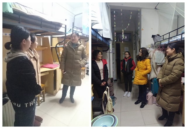 检查宿舍 随堂听课 班会结束后,胡悦超副书记带领辅导员前往员工宿舍检查,她在毕业班宿舍向同学们了解了考研和就业的情况,鼓励进入复试的同学积极准备,不要紧张,多向专业课老师去请教复试的主要侧重点。她叮嘱找工作的同学要主动参加招聘会,主动投递简历,同时,在就业过程中务必要注意安全,以免上当受骗,遇到困难及时与公司联系,公司将全力提供帮助。各辅导员也先后查看了宿舍水电安全、卫生状况,提醒同学们春季是流感的高发季,要及时打扫卫生,开窗通风。25日上午各辅导员深入课堂,随堂听课,下午,顾家山书记和刘晓宇处长也莅临公司员工课堂,与员工共同上好“开学第一课”。