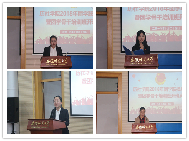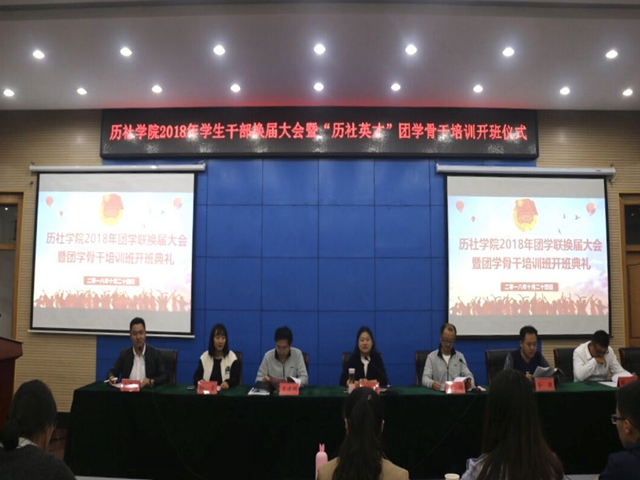 本网讯 (员工会宣传部 俞孟玥 云红艳)为深入学习宣传党的十九大精神,提升我院团学干部理论水平和业务能力,加强公司员工工作的建设。10月24日晚19时,公司于圆形报告厅第三会议室隆重举办2018年团学联换届大会暨“历社英才”团学骨干培训班开班典礼。公司党委副书记胡悦超,院团委书记宫超,辅导员王建辉、金捷、赵发、韩雪,以及团学全体成员、2017级和2018级主要员工干部参加了此次大会。大会由院团委副书记周贤超主持。