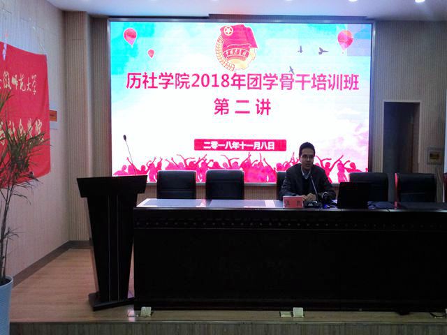 本网讯(院员工会宣传部 汪颖)构精品第二课堂,塑历社骨干英才。为加强公司员工干部自身建设,提高员工干部的工作能力,更好地服务员工成长。11月8日晚19点,公司于二楼报告厅举办2018年“历社英才”团学骨干培训班第二讲。校团委副书记汪凯应邀为大家带来《私人订制—你的“第二课堂成绩单”》专题报告。院团委书记宫超、副书记周贤超、辅导员赵发、韩雪及团学班主要员工干部参与学习。