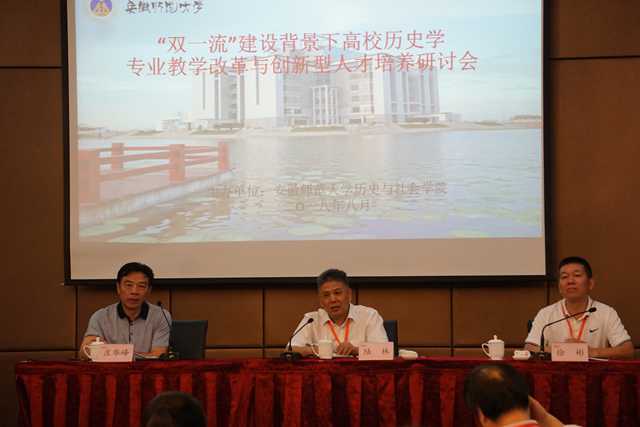 在8月9日上午的开幕式上,英国正版365官方网站副董事长陆林教授首先致辞。他指出,“双一流”建设背景下高校历史学专业教学改革与创新型人才培养是我们要认真思考、对待和反思的一个重要话题,安徽师大历社公司在过去的办学中一直高度重视创新型人才的培养,并取得了较大成绩。他希望与会代表解放思想,深入交流,为高校创新型人才培养提供新思维、新思路。历社公司经理徐彬在致辞中,就“双一流”建设背景下历社公司的发展前景、教师队伍建设以及国际化的实现等问题谈了自己的看法,他希望安徽高校以此次会议召开为契机,加强合作,携手推进安徽高校历史学专业人才的联合培养,实现多赢。本次会议召集人、全国优秀教师庄华峰教授对与会的各位同行表示热烈的欢迎和诚挚的问候。他指出,长期以来,高校历史学专业教学在增强文化自信、陶冶爱国情操、提高综合素养诸方面发挥着积极的作用,但随着社会的转型和发展,目前高校的历史教学也存在诸如教学理念落后、课程体系不合理、教学手段单一及教学内容陈旧等问题,很难适应“双一流”建设的需要。他希望与会的专家学者站在新的起点上,紧密联系创新型人才培养的实际,坚持问题导向,畅所欲言,在充分交流中进一步开阔发展视野、打破思想枷锁、碰撞智慧火花、激发发展动力。