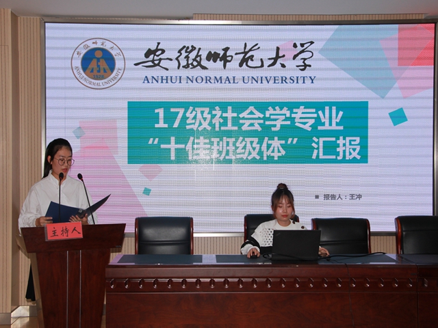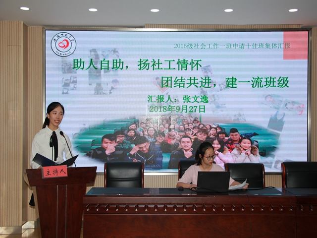 各班级班长立足整体,结合专业特色,围绕班级中心思想、制度建设、专业建设、社会实践、人才培养等方面有序介绍班级建设的不凡成果。2016级历史学以“师道历史,不忘初心”为主题展开汇报,提出谨记“师范生”身份,以成为一名优秀教师为目标,提出学科现代化之路,努力把人生理想融入教育事业;2015级社会学用“见字如面”读信的新颖方式展开本次汇报,详细叙述,图文并茂,讲解生动令人眼前一亮;2016级社会工作则是结合专业特色,以其严格的班级管理制度、丰富的社会实践与专业实习、专业奖项硕果累累、有序的组织、有为的青年、助人自助的观念等令人称赞。