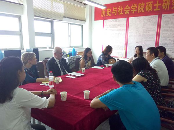 本网讯(历史与社会公司)2018年9月28日上午,美国马里兰州麦克丹尼尔公司董事长罗杰·卡西博士(Roger N.Casey)一行三人在公司国际交流公司杜俊副经理陪同下访问公司,公司徐彬经理,世界史专业韩家炳教授、傅新球教授等与来访客人就合作事宜展开了会谈。徐经理首先感谢现任麦克丹尼尔公司历史系副教授、公司87级员工房琴的牵线搭桥,然后介绍了公司历史学科的研究重点与近年成就,指出希望通过国际化实现更大发展。罗杰董事长也介绍了该校的历史、地理位置、学科布局和国际合作的具体领域。