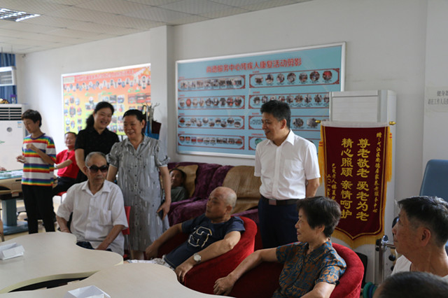 本网讯(严文雯 叶露露)小彩虹创意养老,社工人服务社会。炎炎夏日,小彩虹暑期社会实践团队奔赴芜湖市县两地,开展社区养老服务实践。7月21日上午9时,副董事长陆林,教务处处长、创新创业教育公司经理周端明,经理徐彬、公司党委副书记胡悦超,院团委书记宫超、副书记周贤超、小彩虹暑期社会实践团队指导教师许云云一行来到芜湖市尚德社会服务中心,看望正在此地实践的队员们。