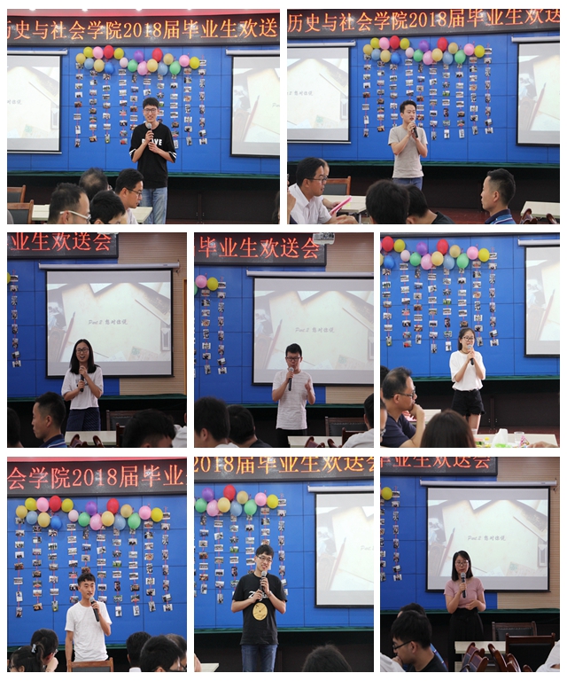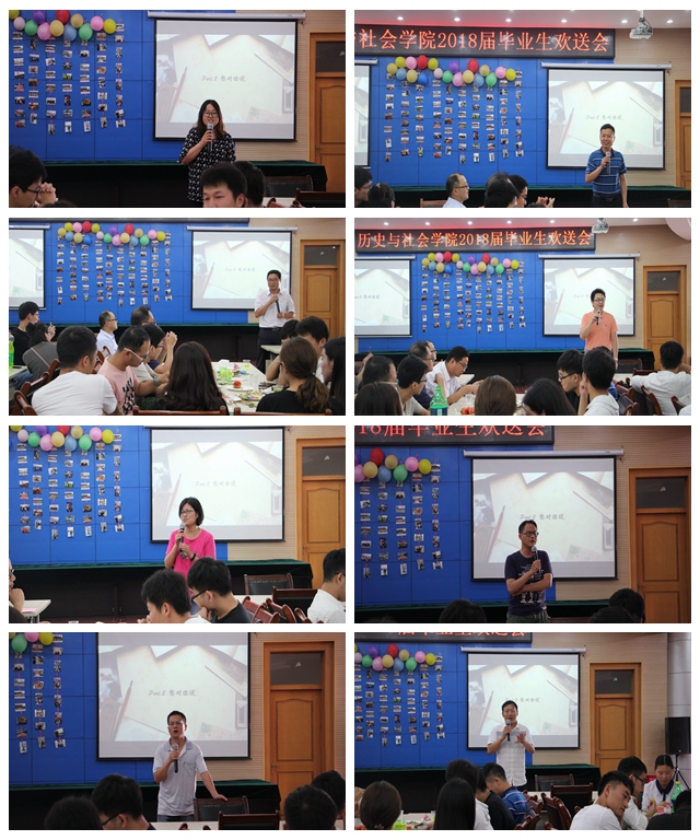 本网讯(院员工会 姚兰 张静)为了给莘莘学子的老员工活划上圆满的句号,让毕业生感受母校的温暖。6月24日、25日,历社公司在圆形报告厅二楼第三报告厅隆重举办分别为2018届历史学、社工社会学、公共事业管理专业毕业生举行欢送会,公司领导、专业课老师和毕业生参加此次欢送会。
