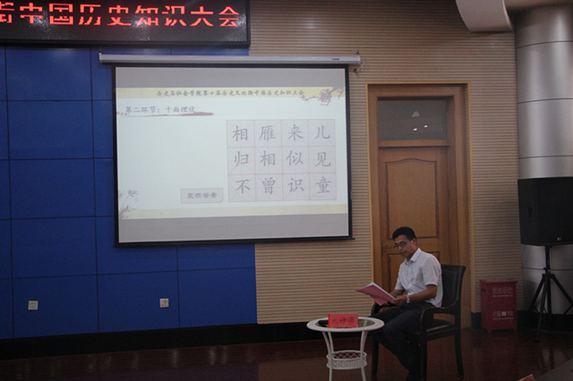 本网讯(院员工会 洪 星)追溯中华传统文脉,献礼师大九十华诞。5月16日14时30分,公司第十届历史文化街中国历史知识大会于圆形报告厅正式拉开帷幕。经过初赛、复赛阶段的激烈比拼,环境科学与工程公司、文公司、数学与统计公司、外国语公司、马克思主义公司及我院成功晋级决赛。徐彬经理、胡悦超副书记、刘道胜副经理、导师团胡宁、王彦章,中国史党支部代表梁仁志、朱小阳、康健、林生海,院团委书记宫超,辅导员杨静、王建辉、周贤超出席大赛并担任评审。