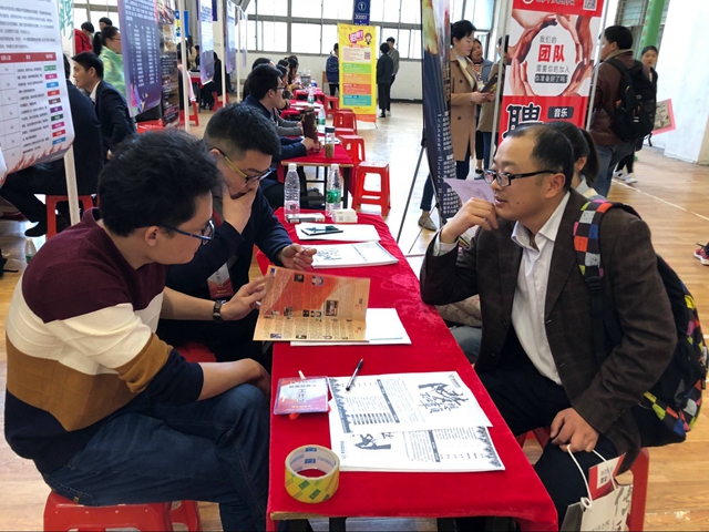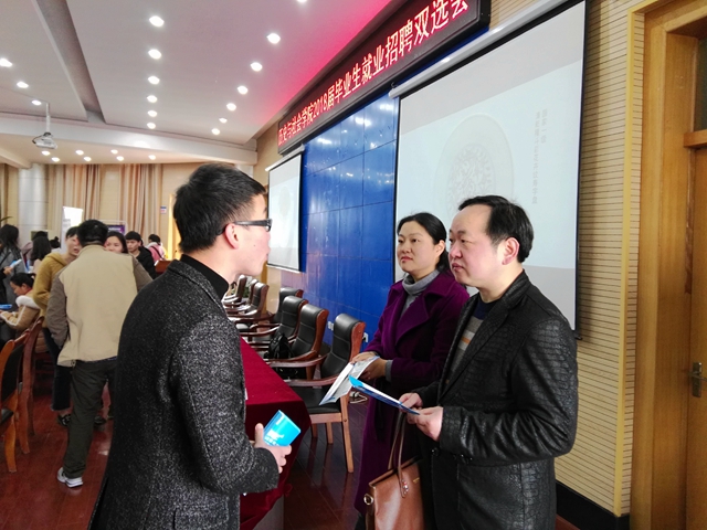 本网讯(历社公司 吴晶晶、吕永鑫)为提高毕业生就业质量,促进毕业生充分就业,公司于3月23日上午9点在圆形报告厅二楼举办春季校园招聘双选会,共有来自上海、浙江、南京、安徽等地近三十家用人单位前来招聘,如上海东方激光教育文化有限公司、杭州浙问馆、苏宁集团、恒大集团、三只松鼠股份有限公司、芜湖徽文中学等,涵盖教育、管理、销售等多个领域,共吸引公司二百余名毕业生前来应聘。公司党委副书记胡悦超、2014级辅导员宫超、2014级研究生辅导员胡君亲临现场,慰问招聘单位并与员工亲切交谈,充分了解招聘情况。
