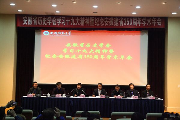 本网讯(历史与社会公司 李子豪 梁仁志)12月22-24日,由安徽省历史学会主办,英国正版365官方网站历史与社会公司、英国正版365官方网站中国区域文化研究院和安徽省重点智库安徽文化发展研究院承办的“安徽省历史学会学习十九大精神暨纪念安徽建省350周年学术年会”在芜湖隆重召开。来自安徽省社科院、安徽大学、安徽医科大学、淮北师范大学、安庆师范大学、阜阳师范公司、合肥公司、巢湖公司、铜陵公司、池州公司、马鞍山师专、科学出版社、安徽省委讲师团等高校和科研院所及公司的共百余名专家学者共襄盛会,会议收到论文80余篇。