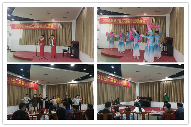 严 佳 肖 凯)为进一步增进公司社会和社工专业同学们的沟通与了解,增强专业的凝聚力,营造积极向上、团结和谐的公司氛围。12月3日晚7时,公司15、16、17级社会学专业及社会工作专业联谊会于图书馆一楼大益爱心茶室隆重举办。公司党委副书记胡悦超,专业老师陈爱如、项青松、高修娟、吴金芳、谢余庆、马路,院团委书记宫超,辅导员王建辉、周贤超应邀参加晚会。整场晚会气氛活跃,充满欢声笑语。