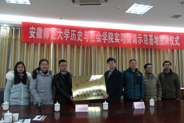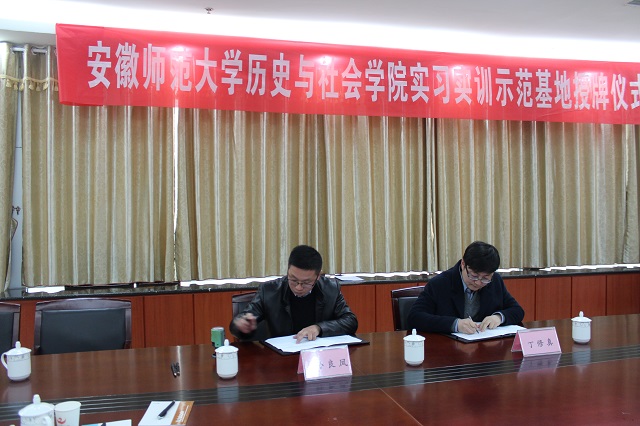仪式上,范文副主任介绍了含山县文化旅游情况,对各位老师们的到来表示热切的欢迎,孙良凤馆长介绍了含山博物馆的基本概况和实习实训基地的相关情况。随后,丁修真副教授介绍了安徽师大和公司的基本情况、人才培养方案和历史系师生所取得的一系列成绩。在热烈的掌声中,孙来凤馆长与丁修真副教授签订了实习实训基地共建协议。