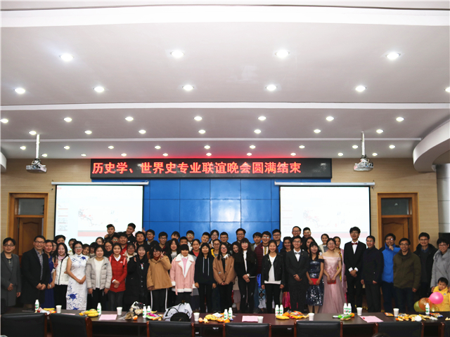 历史、世界史全体同学在圆形报告厅二楼举办了专业联谊晚会。专业教师解光云、韩家炳、徐尚平、王彦章、林生海以及辅导员王建辉、杨静应邀参加晚会。