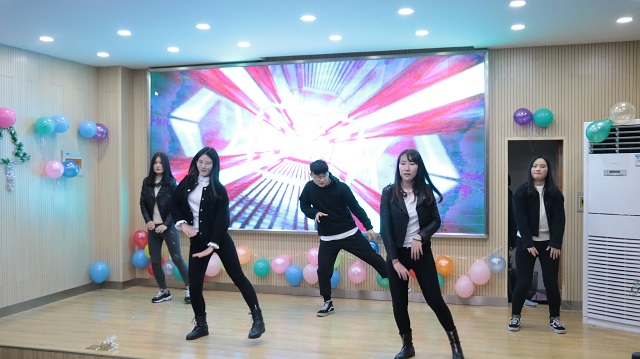 而在第二篇章“点滴心愫,时光美好”中,首先亮相的是管秋爽等人充满青春与活力的舞蹈《告白短裙》,酷炫的舞姿,激昂的音乐,惊艳了全场观众将晚会的气氛推向新的高潮。汪兆祺的《Five hundred miles》歌曲,听得大家如痴如醉。邢韵独唱的《房间》更是引得现场尖叫不断。贺明明的武术表演《长拳》,在行云流水之中展现了步伐间的遒劲有力。而现场互动的《抢椅子》,使晚会的气氛更加欢乐融洽。