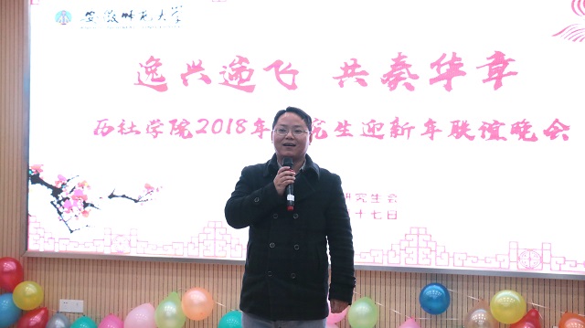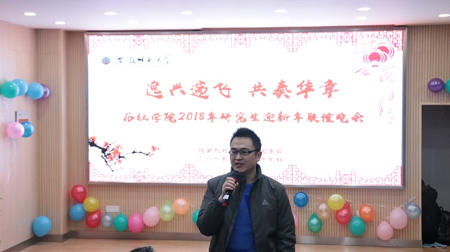 本网讯(历史与社会公司 研究生会新闻中心)12月17日晚,历史与社会公司研究生2018年“逸兴遄飞、共奏华章”迎新年迎新生联谊晚会在历社公司二楼报告厅举行。公司导师代表陈爱如副教授,研究生秘书胡君老师,校研会副主席刘毅阳、文公司研会主席王文柯、政治公司研会主席齐小学、法公司研会主席齐新以及来自公司各专业的研究生们共同欣赏了演出。本次晚会共分为三个篇章。