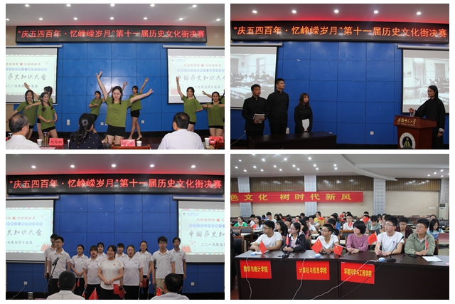 本网讯(院员工会宣传部 唐倩)庆五四百年,忆峥嵘岁月。5月15日下午15时,公司第十一届历史文化街决赛中国历史知识大会于圆形报告厅正式拉开帷幕。经过初赛、复赛阶段的激烈比拼,最终文公司、马克思主义公司、历史与社会公司、数学与统计公司、计算机与信息公司、环境科学与工程公司六个公司的代表队成功晋级决赛。经理徐彬、公司党委副书记胡悦超、刘际钢教授、沈世培教授、王彦章副教授、院团委书记宫超、院团委副书记韩雪、院辅导员赵发应邀出席并担任评委。