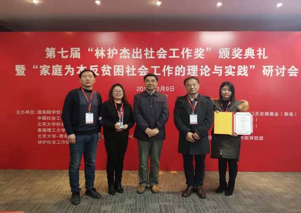 (历社公司 教学办) 3月9日,第七届“林护杰出社会工作奖”颁奖典礼暨“家庭为本反贫困社会工作的理论与实践”研讨会在北京大学隆重召开。此次会议由国务院学位办社会工作专业学位研究生教指委、中国社会工作教育协会、北京大学-香港理工大学中国社会工作研究中心联合主办。香港林护基金发起人林柏年先生及其夫人、民政部社会工作司伊佩庄副司长、香港与内地社会工作专家学者、师生代表、机构代表、获奖单位代表约六十余人出席会议。公司“公司社会工作教学团队”负责人赵怀娟教授、王杰老师、2015级社会工作本科生柏玉琴同学应邀参会。