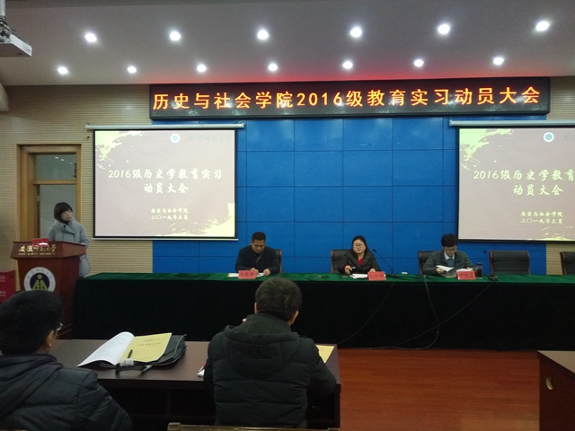 本网讯(16历史学 高金岩) 教育实习是师范生培养过程中非常重要的一个环节,也是对员工师德规范、专业知识和教学技能的综合考察。为做好2019年度教育实习工作,提高员工的教育实践能力,3月7日上午,公司在花津校区第三报告厅召开教育实习动员大会。出席会议的有教学副经理赵怀娟、历史系主任丁修真与全体实习指导老师。会议由2016级辅导员杨静主持,16级历史学全体员工参会。