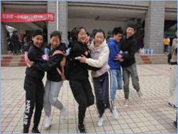 尽管春寒料峭,也阻挡不了同学们参与的积极性。下午两点,“为爱暴走,社工带你零距离沟通”活动在一食堂南广场正式开始。参赛人员来自不同院(系、部),大约100名。本次活动要求参赛者提前半小时到场,进行热身运动,以免在比赛过程中受伤。比赛由四个游戏关卡组成,包括背靠背“拥抱”、解手链、“穿报竞走”、“指压板双人跳绳”,参赛者每完成一项游戏关卡,需找工作人员对所携带明信片进行盖章,才可进入下一关卡。经过一个多小时的激烈角逐,最终选出一等奖10名,二等奖21名,三等奖10名。