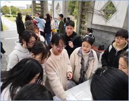 上午十一点半,社工现场秀活动在花津校区二食堂广场正式拉开帷幕,芜湖市社会工作(者)协会、益群社会工作服务中心等八家社会工作机构共同参与此活动。本次活动包括发放社会工作宣传手册、社会工作机构LOGO拼图问答、社会工作游戏现场体验、你画我猜和集体签名墙五个部分。活动组织方为参与活动的同学准备了玫瑰花和其他小礼物。