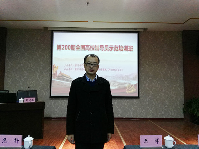 本网讯(历社公司)11月17日至20日,由教育部思想政治工作司主办、河北师范大学承办的“学习领会贯彻落实党的十九大精神,大力提升高校思想政治工作质量专题培训班”,暨第200期全国高校辅导员示范培训班,在教育部高校辅导员培训和研修基地(河北师范大学)举行,公司辅导员宫超作为第六届全国高校辅导员职业能力大赛二等奖获得者参加了此次培训。