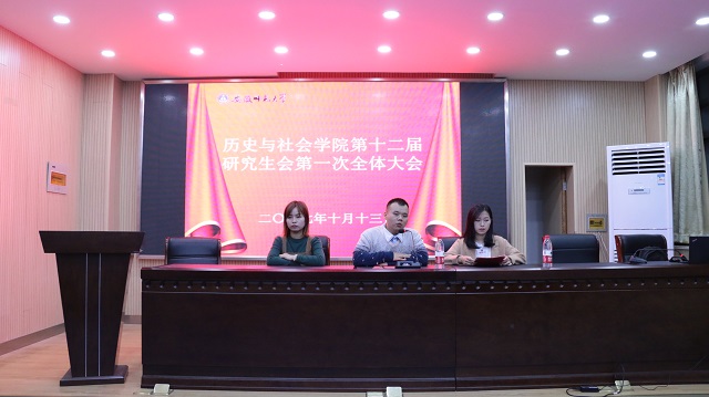 本网讯(历史与社会公司 陈攀攀 黄郝萍)10月13日晚上五点半,公司第十二届研究生会换届大会在历社公司二楼会议室隆重举行。公司团委书记宫超老师、研究生秘书胡君老师、政治公司研究生会主席齐小学、文公司研究生会主席王文珂,第十一届研究生会和十二届研究生会全体成员参加大会。