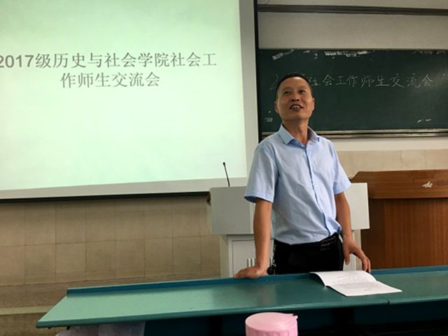秉社会正义,弘扬正能量。 2017年9月19日下午2点30分社会工作全体同学在行知楼2050204教室举行了师生见面会。社会工作专业教研会的张金俊副教授出席会议并和同学们交谈。首先,他在谈话中指出助人自助就是这个专业的核心内涵,要求同学们在今后的专业学习中同学们需要逐渐将助人为乐作为自己发展的准绳,增加社会正能量。其次,学习社会工作专业能很好的提高处理人际关系和管理机构与领导团队的能力。同时,我们也拥有较多的可以共享的社会资源。为了解除同学们对专业发展的困惑,张老师又在团队力量方面做了详细的介绍。他提到社工专业为每位本科生配备了专业导师,导师将为本科生未来四年的专业学习提供指导。公司社会工作专业的办学时间长,依托中西部高校基础能力建设工程,在全国中西部地区都有着较强的专业能力。本专业的员工毕业后,都会有良好的发展。最后,对于学习的问题张老师给出了自己的几点建议。第一,同学们要认真听取专业老师的意见。第二,听老师的话,努力的学习,就专业问题积极向专业教师请教。第三,以优秀毕业生为榜样。第四,保证自己的专业性,踏实学习专业知识保持专业特色。在这场交流会中,同学们认识到了作为一名社工人的责任和使命,立志将践行助人自助的专业原则融入学习生活中。