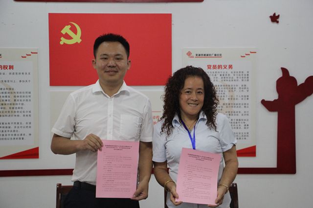 会上,为加强双方党支部建设,公司2015、2016级本科生党支部书记金捷还与援通智能化养老服务中心党支部书记蒋小玲签订了党支部结对共建协议。