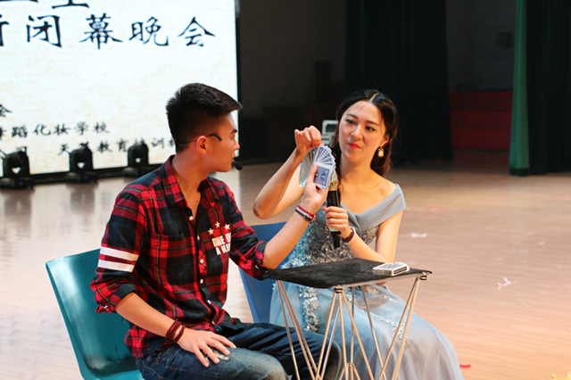 毕业是一种离愁,是一种不舍,更是一种成长。无论身处何处,四年的大学时光必将是人生最美好的回忆。情景剧《毕业了》以片段的形式再现师大生活的点点滴滴,我们的毕业生也从初入校园的懵懂少年成长为肝胆皆冰雪、热血似沸茶的有为青年。最后那句:“我们走了”,不知戳中了多少人的泪点。而后奇幻色彩浓厚的魔术表演《千变万化》在大家期待中上演,仅仅几十张普通的扑克牌,在魔术师手中仿佛被施了魔法,在几百人眼下眼花缭乱地变换着,精彩纷呈;第一轮抽奖过后,激情满满的串烧歌舞《run the wold》一经亮相,酷炫的风格立即吸引了大家的注意力,飞扬的舞步一如演奏者在键盘上跳跃的指尖一般灵动,略显凌乱的发丝下,年轻的面孔上张扬着灿烂的笑容。