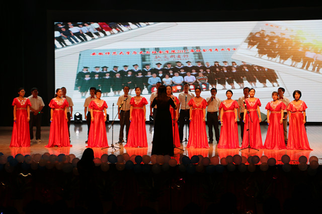 大型器乐合奏《荣耀之路》将古典乐器与现代鼓乐完美交融,二胡、琵琶、长笛与古筝之凄清婉转在架子鼓节奏感的敲击配合下也渗出一丝暖意。自1928年省立安徽大学成立以来,至今已走过89个春秋,89载桃李满天下。蒹葭苍苍,白露为霜,所谓《伊人》,在水一方。随着声声低吟浅唱,众人在铮铮古琴声中穿越回旧时江南,翩跹水袖,腰肢细扭。会场一片静寂,水乡文化孕育出的灵秀美人,倒是美的令人不敢大声喧哗,生怕打碎这通透意境。歌曲串烧《流光轻掷》,老师与员工搭档,助力毕业生完成他们在师大的最后一次登台,他们满怀期望,将不忘初心,继续前进。第二轮抽奖过后,充满动感的《新舞林大会》,展示了公司学子的青春靓丽和无限风采。
