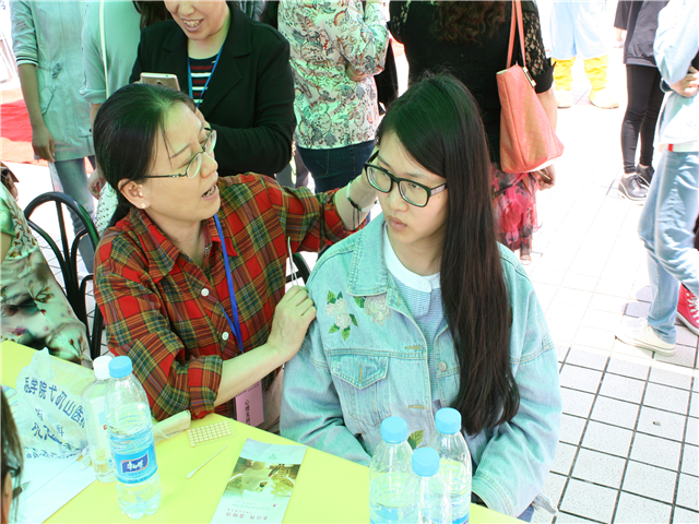 咨询导入,敞开你我心扉。在咨询区域,由弋矶山医院专业的护理医生和心理医生亲自坐镇,为参加活动的同学提供热心的心理咨询服务。“罗夏墨迹”性格测试、主题统觉测验游戏等一个个陌生新奇却妙趣横生的心理测试游戏,以及专业医生们亲切的语言、真诚的微笑和耐心的回应,犹如一把把心灵钥匙解开了同学们的心扉,也化解了同学们心中的心结。另外,弋矶山医院专业医生还为同学们带来中医减压法,同学们在体验中也感受到了中医的神奇与乐趣。