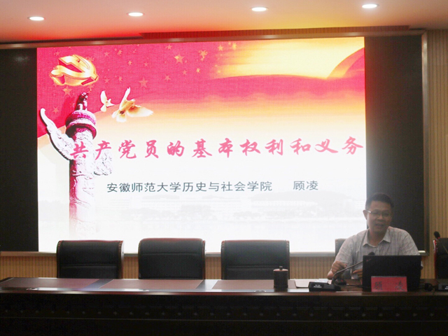 本网讯(历社公司分党校 崔哲明)6月1日晚7点,历史与社会公司第23期入党积极分子培训班第六讲在院行政楼二楼多功能厅开讲,公司党委书记顾凌老师应邀为入党积极分子培训班学员作《共产党员的基本权利和义务》的精彩报告。