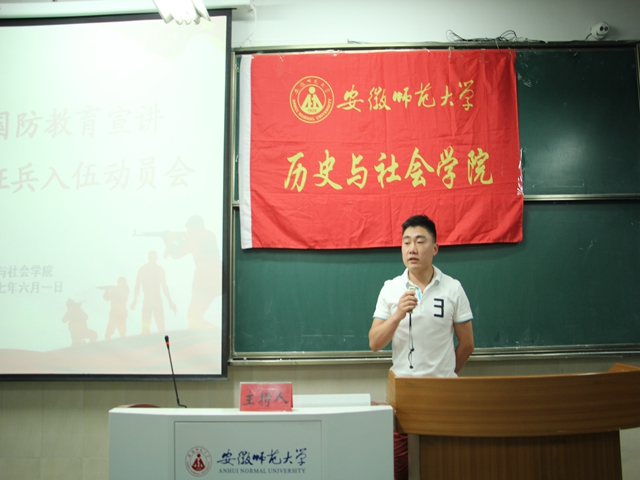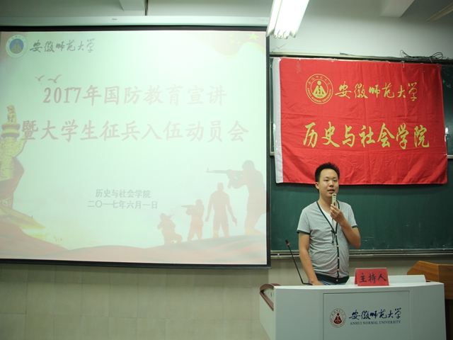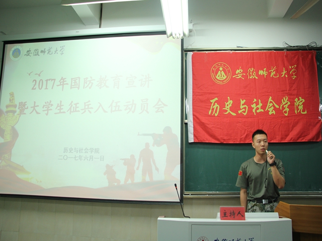 (本网讯)向祖国报道,为青春点赞。为加大老员工征兵宣传力度,激发高学历青年参军热情。6月2日晚公司在教学楼2040101召开2017年国防教育暨老员工征兵入伍动员会。院团委书记宫超、16级辅导员杨静、周贤超、以及退伍复学的原12级公共事业管理专业衡成成、原13级计算机专业杜晓东同学参加了此次动员会,动员会由15级辅导员金捷主持。
