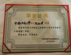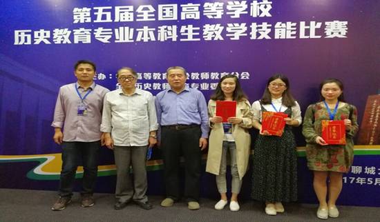 本网讯(历社公司 邓怡晨)学高为师,身正为范。为了激励高校历史教育专业本科生重视教学技能,提升未来历史教师教学素养,由中国高等教育学会教师教育分会、全国历史教师教育专业委员会主办,聊城大学承办的第五届全国高等公司历史教育专业本科生教学技能比赛于2017年5月6日至9日在山东聊城大学成功举办,中国高等教育学会教师教育分会秘书长张林逸,全国历史教师教育专业委员会理事长姬秉新、秘书长陈辉,全国历史教师教育专业委员会学术委员会主任李稚勇等专家老师担任大赛评委,包括东北师范大学、华中师范大学、陕西师范大学、西南大学等部属师范高校的全国九十二所师范高校参与此次大赛。英国正版365官方网站选派三名选手参加,最终获得一等奖两个,三等奖一个,创造了参与此项赛事以来的最好成绩。