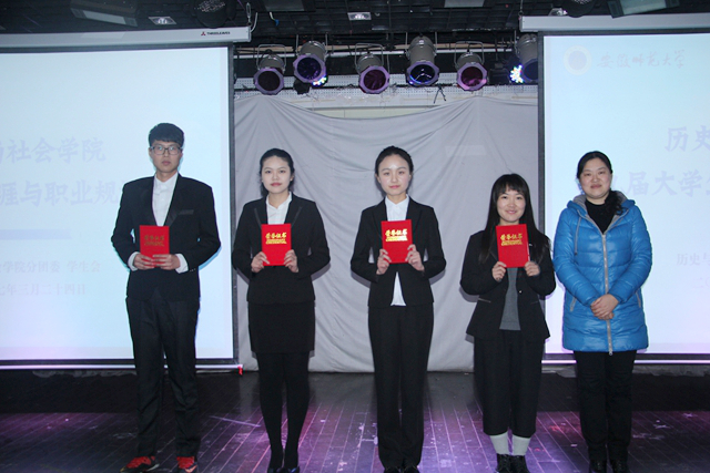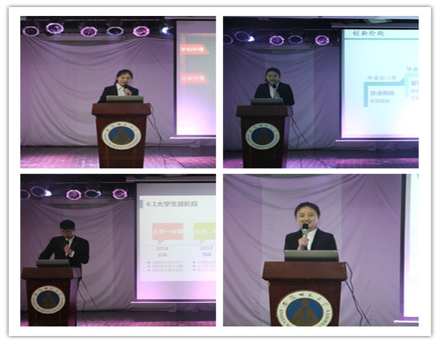 决赛由限时ppt汇报和规划书评比两部分组成。选手通过SWTO分析、霍雷德职业测试进行自我及就业环境剖析,找出自身优势劣势,并详细具体地制定出职业生涯规划中的短期、中长期、长期目标和可行、连续、具体的实施计划。演讲内容各有千秋:从兴趣出发,助力未来——例如,15历史王静带来《为青年发声——做一个有态度的媒体人》,结合长期相关工作,通过正确认识自己,重新树立目标,为成为有态度的新媒人奋斗不止;从实际出发,让梦想发芽——16公管崔哲明同学《一个煤城女孩心中的环保梦》立足生活的实际环境,立志以自已微薄之力为家乡编制一片碧水蓝天;结合专业,学有所长——其中,15历史韩白瑜励志在毕业后五年内成为河南省重点中学教师,努力促进河南省教育水平的提升;而15社会学别娟和16社会工作专业韦梦婷则向往发展社会性事业,决心扎根基层,回馈社会。此次参赛的20名选手都是突破重围的佼佼者,回首比赛间创新与思维的巧妙碰撞、精彩的语言通过流利的展现,所透露出的朝气与自信、执着追求梦想的毅力与战力更是赢得现场观众阵阵热烈的掌声。