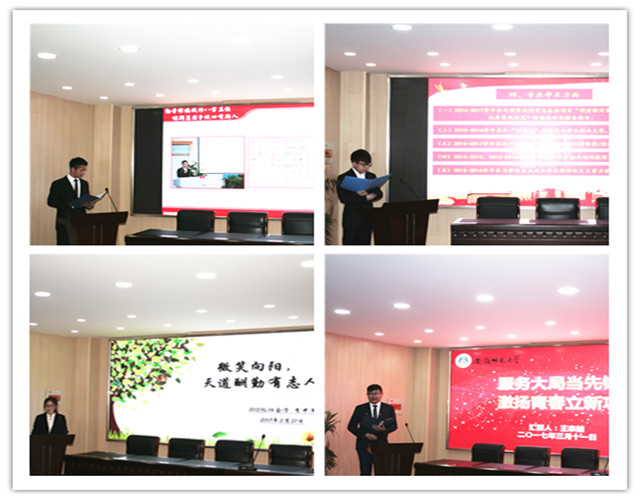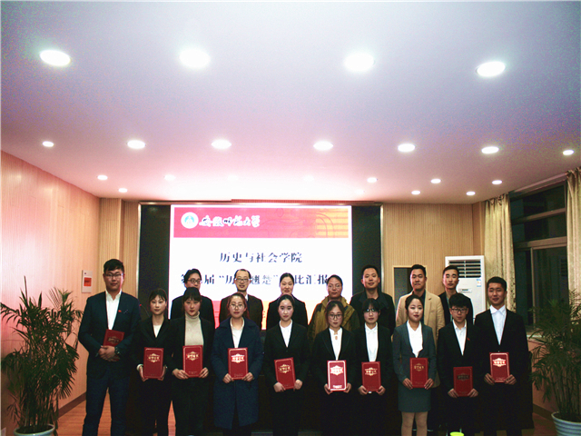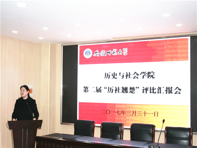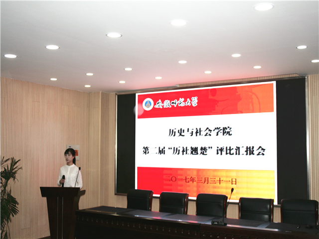 本网讯(院团委宣传部 张文逸 韩明非)为了有效引导青年老员工积极践行社会主义核心价值观,发挥先进典型的引领示范作用,形成勤学慎思、质朴谦逊的学风。历史与社会公司于3月31日晚7点在院行政楼二楼会议室举办第二届“历社翘楚”评比汇报会。公司党委副书记胡悦超,院团委书记宫超,辅导员杨静,王建辉,胡君,金捷,周贤超以及院社团指导老师王雨兵应邀担任评委。团委全体委员及16级各班班级代表参与此次汇报会。