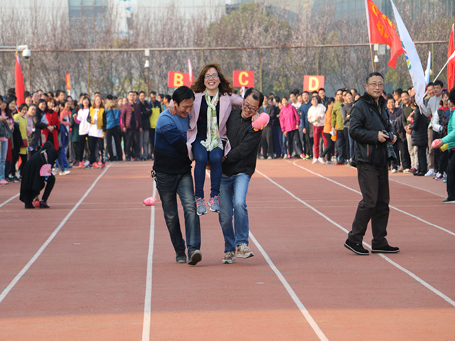 第二个比赛项目是“集体跳绳”,教职工们精神抖擞,齐心协力,长绳连接着团结,跳跃演绎着拼搏。最后进行的比赛项目是“抬新娘”,随着一声令下,教职工们健步如飞,意气风发,奋力向终点跑去。比赛在欢笑、喝彩与掌声中,高潮迭起,生趣盎然,本次趣味运动会不仅缓解了教职工们平日繁忙紧张的工作压力,而且让大家共同享受了运动带来的健康与快乐。
